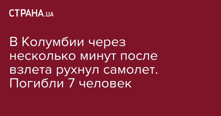 В Колумбии через несколько минут после взлета рухнул самолет. Погибли 7 человек
