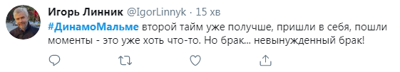 43 Но до второй 45-минутки еще нужно дожить без пропущенного динамовцам. Атаковали гости и несколько раз в течение минуты пробивал нападающий "Мальме" Кристиансен. Оба раза мяч до Бойко не долетел, хорошо играют защитники