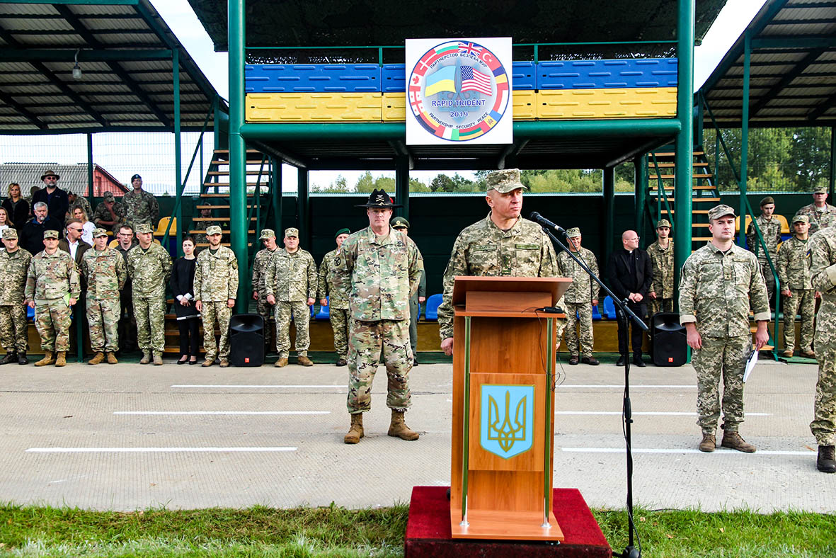 На базе Международного центра миротворчества и безопасности Национальной академии Сухопутных войск имени Петра Сагайдачного во Львовской области 16 сентября состоялась церемония открытия украинско-американских командно-штабных учений с привлечением войск "Rapid Trident-2019" ("Стремительный трезубец-2019"). Об этом сообщает сайт Министерства обороны Украины.