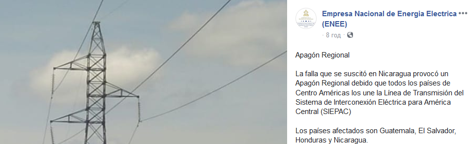По данным компании, причиной глобального сбоя стала авария на территории Никарагуа. Все страны региона соединены общей линией электропередачи. Сейчас ведутся работы по восстановлению электроснабжения стран.