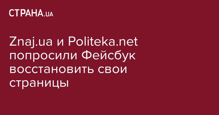 В администрациях сайтов Znaj.ua и Politeka.net отрицают использование фейковых аккаунтов и требуют восстановить страницы своих интернет-изданий в Фейсбуке. Ранее в этой соцсети прошла масштабная кампания по удалению фейковых аккаунтов.