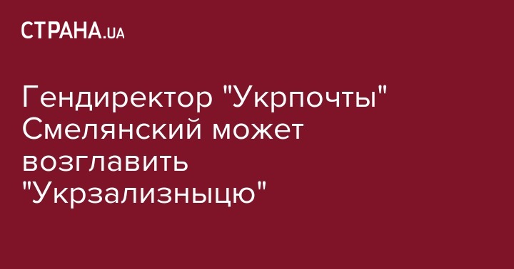 Генерального директора "Укрпочты" Игоря Смелянского рассматривают как возможного главу "Укрзализныци". Об этом "Стране" сообщил источник в правительстве.