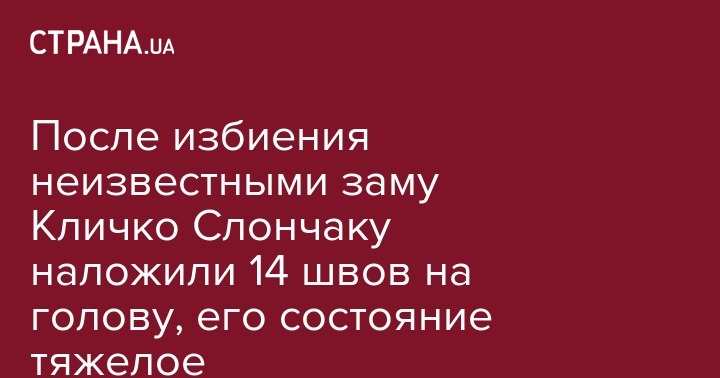 "Пресс-служба подтверждает факт нападения на Владимира Слончака вчера вечером. Сейчас состояние заместителя председателя КГГА тяжелое, наложено 14 швов на голову. Пока это все", - говорится в сообщении.