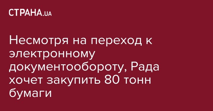 Практически одновременно с голосованием за отказ от бумажного документооборота в пользу цифрового аппарат Верховной Рады объявил на площадке Prozorro крупный тендер стоимостью 3,55 млн грн. За эти средства чиновники намерены приобрести бумагу, в том числе: