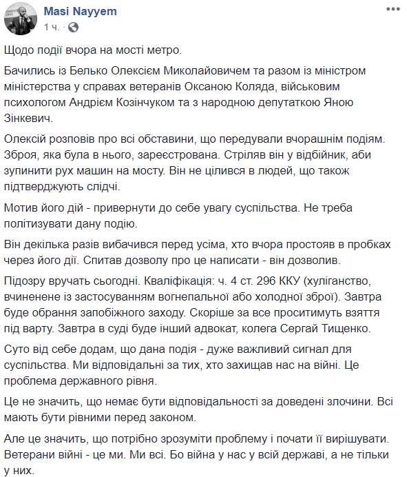 Сегодня полиция предъявила Украине "мостового террориста" Алексея Белько - военного из Броваров, который в среду захватил мост Метро в Киеве.