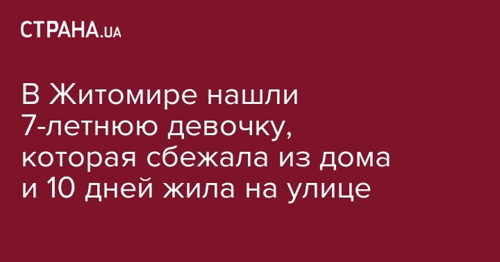 В Житомире нашли 7-летнюю девочку, которая сбежала из дома и 10 дней жила на улице