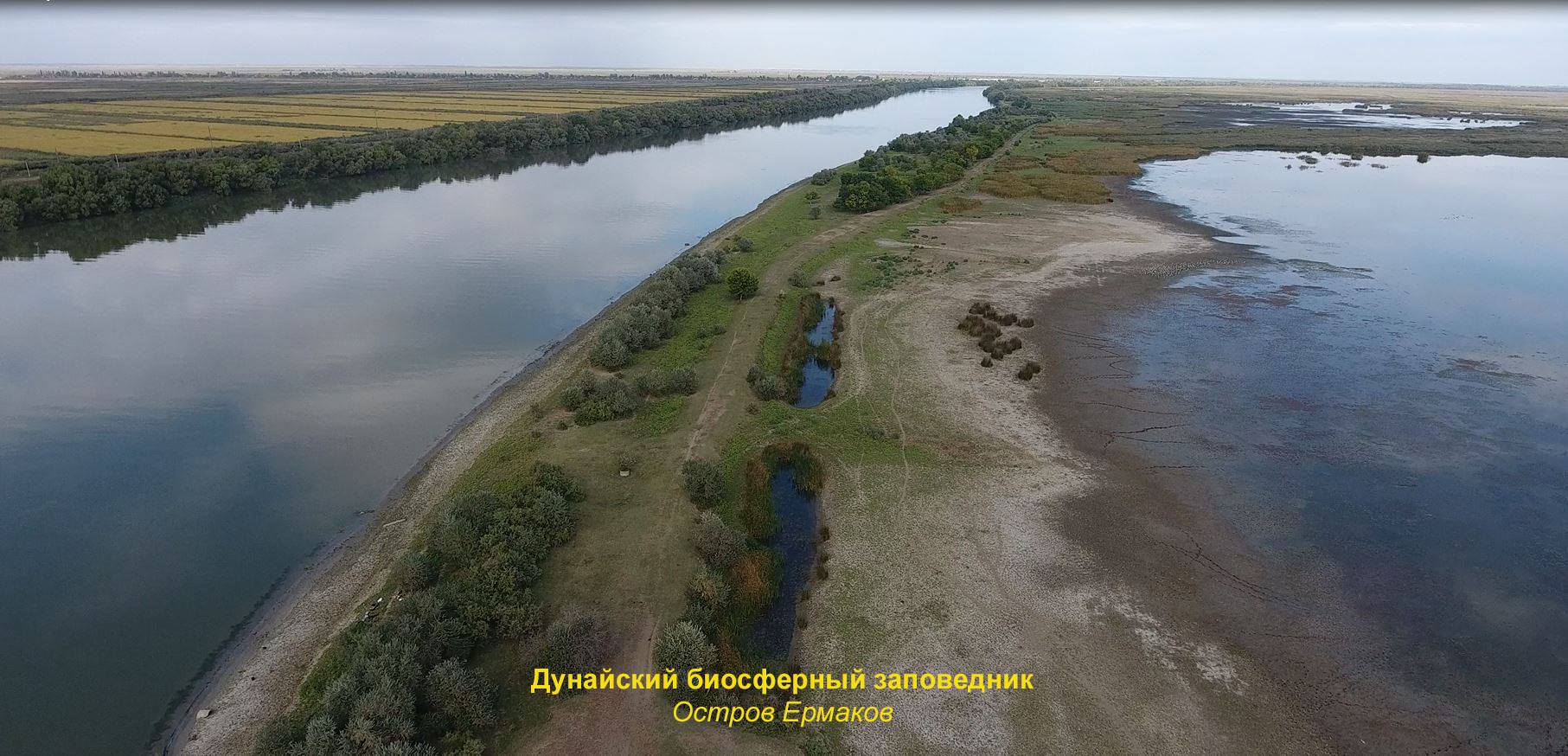 Остров Ермаков находится между Соломоновым рукавом и Килийским устьем Дуная. Его площадь 2334 гектара, часть территории острова входит в состав Дунайского биосферного заповедника, здесь орнитологи зафиксировали около 220 видов птиц (свыше 80% орнитофауны заповедника), есть также много животных, в том числе стадо водяных буйволов, завезенное недавно из Закарпатья немецким экологом и активистом Мишелем Якоби в рамках проекта "Восстановление водно-болотных угодий и степей региона дельты Дуная", чтобы помочь сохранить ландшафты и восстановить местную экосистему.