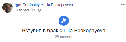 Стоит отметить, что в конце августа Лилия Подкопаева и Игорь Дубинский, вероятно официально оформили свои отношения. Информация об этом содержится на странице бизнесмена в соцсети.