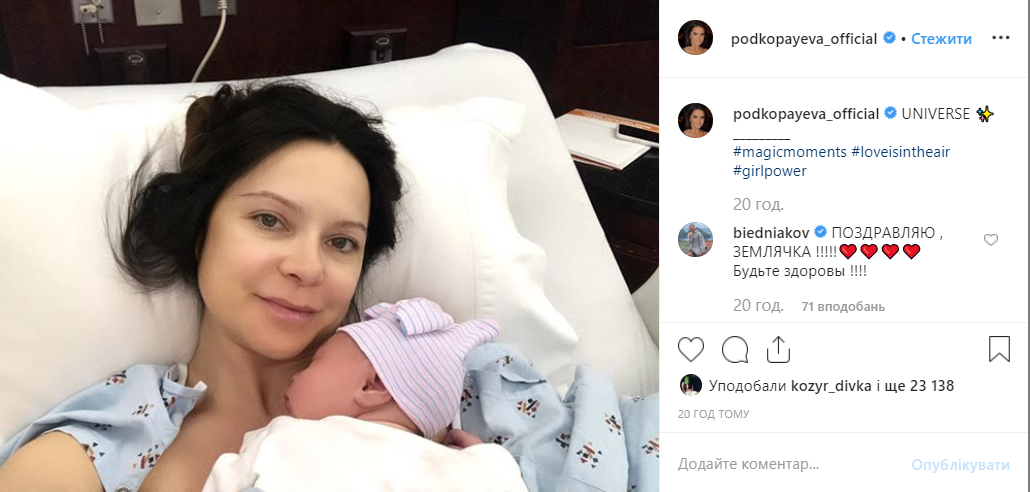 Первое фото с новорожденной дочерью Лилия Подкопаева опубликовала в Instagram. "Вселенная", - написала она в соцсети.