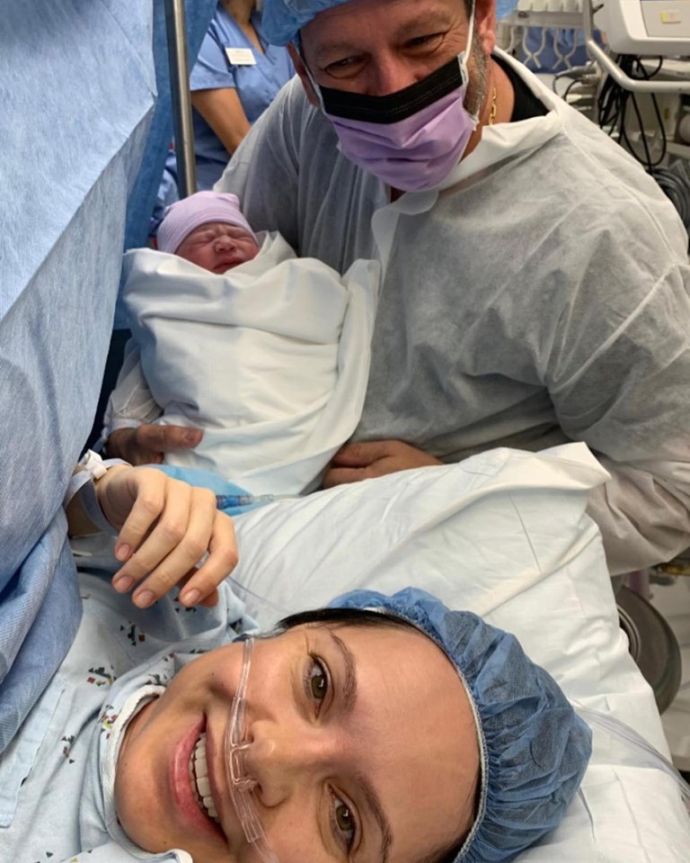 Судя по другой опубликованной фотографии, где с новорожденной малышкой запечатлены ее счастливые родители, девочка появилась на свет путем кесарева сечения.