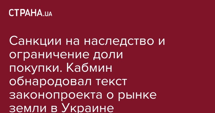 Санкции на наследство и ограничение доли покупки. Кабмин обнародовал текст законопроекта о рынке земли в Украине
