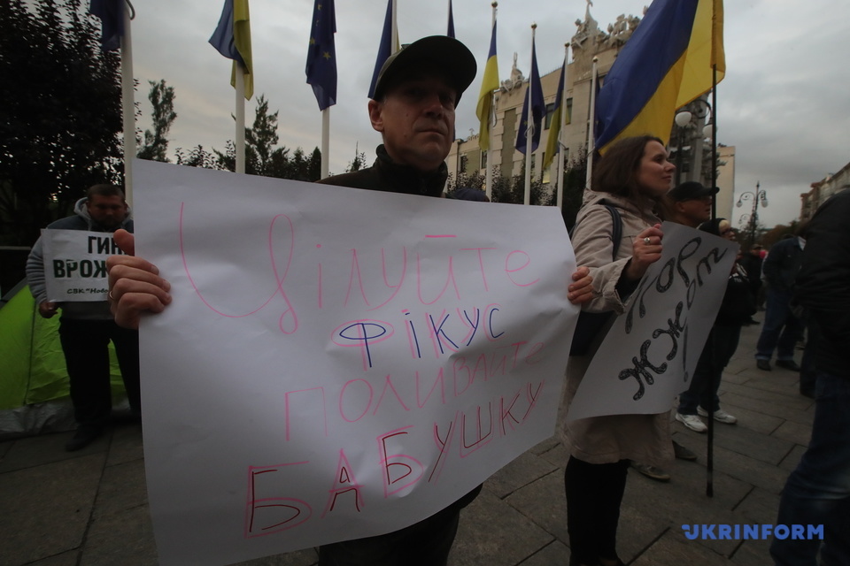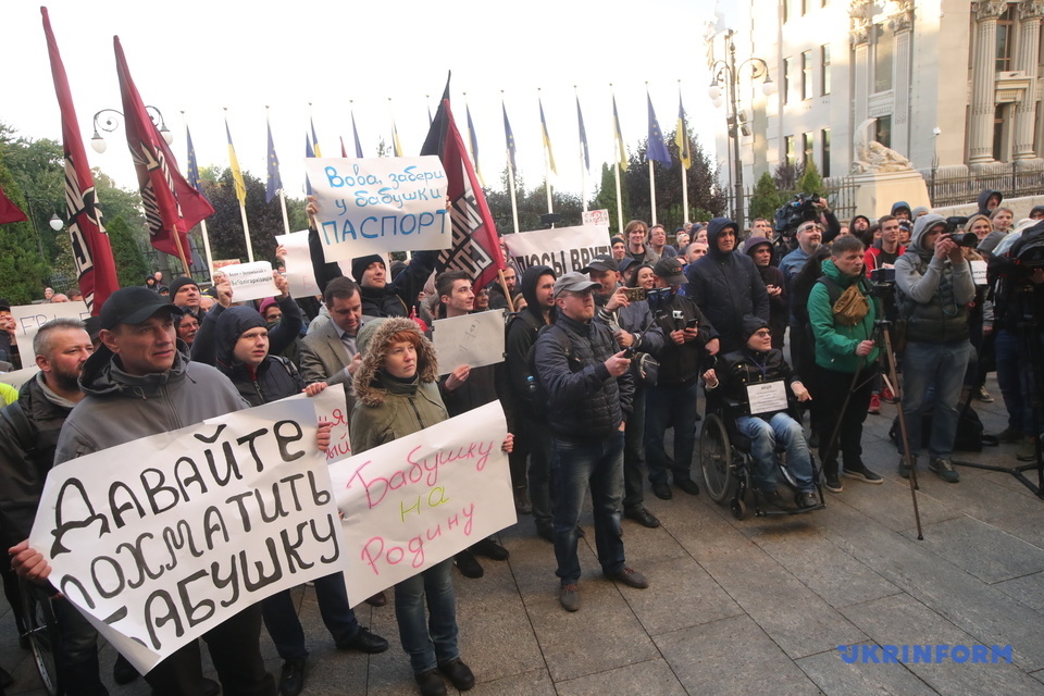 Он добавил, что участники акции требуют от Зеленского взять под контроль эту ситуацию и сделать так, чтобы процесс рассмотрения заявления не затягивался.