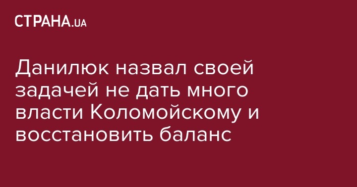 Секретарь СНБО Александр Данилюк объявил, что его задача сделать все, чтобы Игорь Коломойский не получил большой власти в Украине, а также восстановились баланс и доверие.