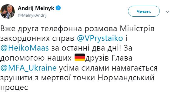 Как сообщил в своем Twitter посол Украины в Германии Андрей Мельник, это уже вторая такая беседа за 2 последних дня.