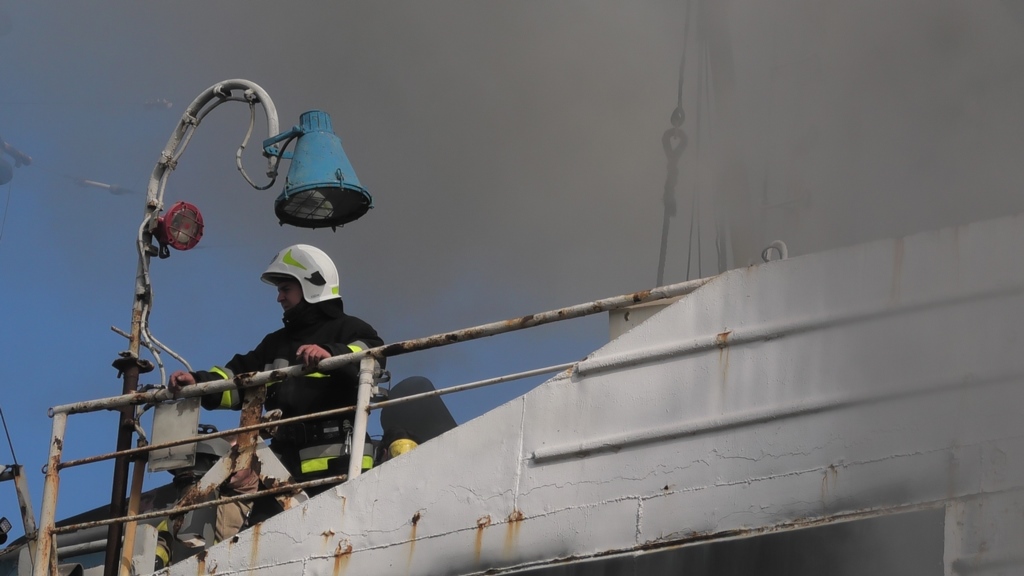 Сообщение о возгорании поступило в 9:15. Прибывшие на место спасатели установили, что загорелась палуба судна, которое на момент пожара находилось на ремонте.