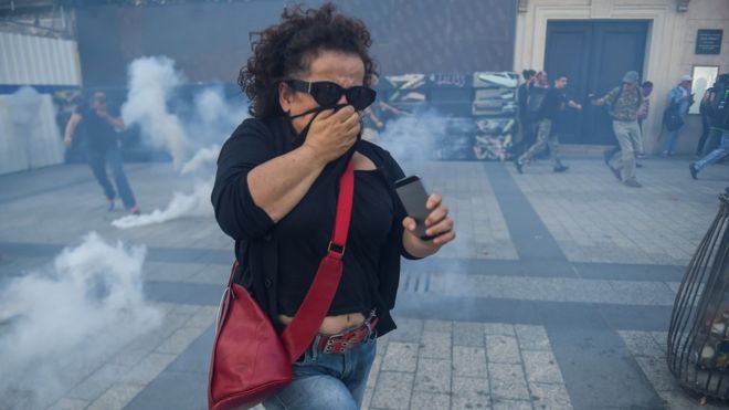 По сведениям телеканала BFM, сегодня полиция применила слезоточивый газ против группы демонстрантов, которые направлялись на Елисейские поля.