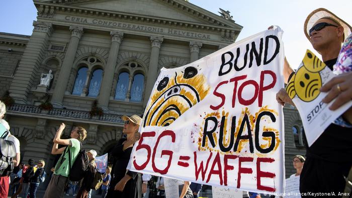 Активисты уверены, что новый стандарт связи подвергнет их тела "принудительному облучению". Также на митинге заявляли, что внедрение пятого поколения мобильной связи в Швейцарии является "преступлением против прав человека".