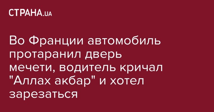 Во Франции автомобиль протаранил дверь мечети, водитель кричал "Аллах акбар" и хотел зарезаться