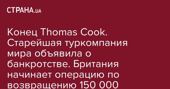 На мировом туристическом рынке грянула громкая сенсация. Британский туроператор Thomas Cook Group (компания была основана еще в 1841 году - Ред.) прекращает существование после того, как не смог найти средства для предотвращения банкротства.