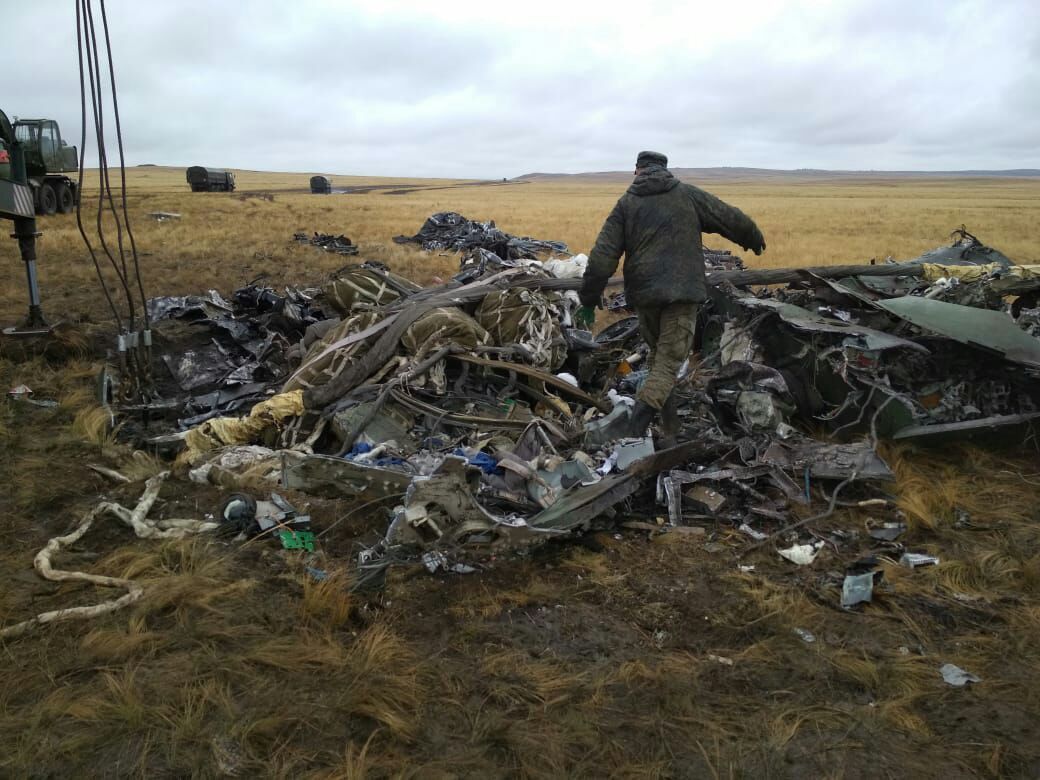 На снимках видно, что от двух боевых машин, которые, по данным российского Минобороны, разбились из-за отказавших парашютных систем, практически ничего не осталось. Их десантировали с самолетов Ил-76.