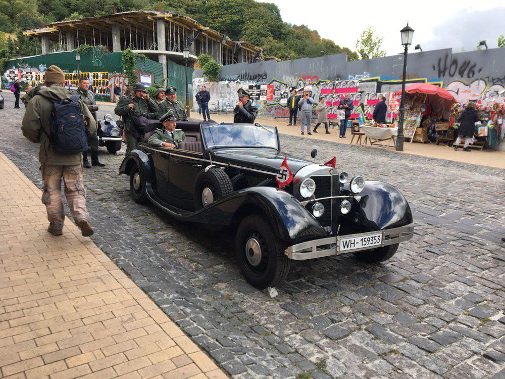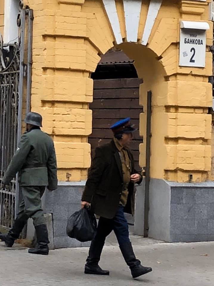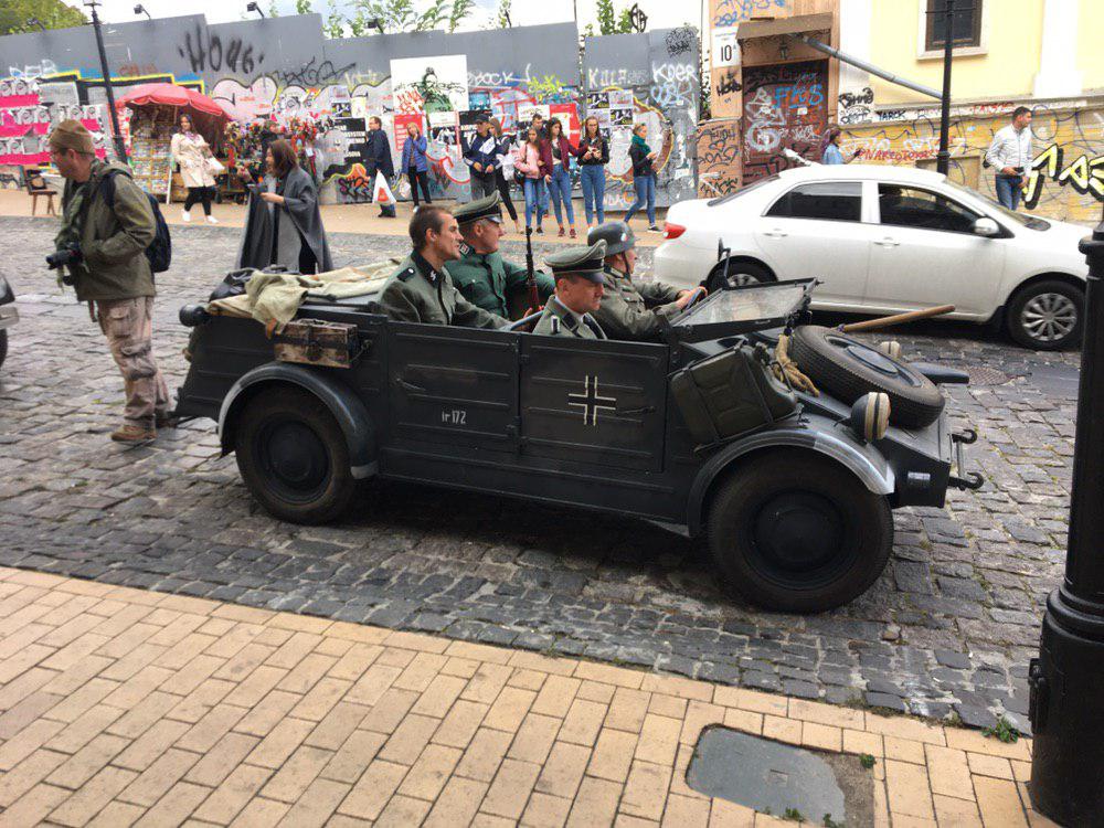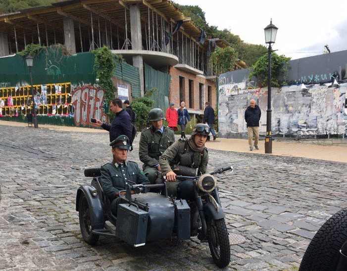 Стоит отметить, что подобные декорации были расставлены и в начале уикэнда на Андреевском спуске, где также снимали эпизод художественного фильма. На исторической улице, которую уже давно облюбовали художники и ремесленники, люди в форме солдат Вермахта разъезжали на мотоциклах и автомобилях того времени, пишет "Наш Киев".