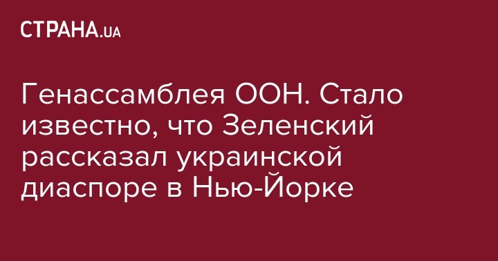 Генассамблея ООН. Стало известно, что Зеленский рассказал украинской диаспоре в Нью-Йорке