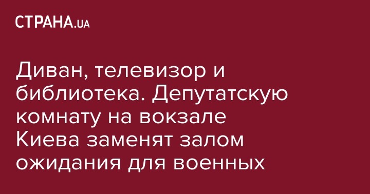 "Теперь могу официально подтвердить: депутатскую комнату на Центральном железнодорожном вокзале Киева переоборудуют в зал ожидания для военнослужащих. Сегодня там идут последние подготовительные работы", - говорится в сообщении.