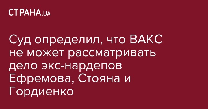 В процессе подготовительного судебного заседание в уголовном производстве, обвиняемыми в котором являются экс-руководитель фракции от Партии регионов Александр Ефремов, а также бывшие народные депутаты этой же фракции Александр Стоян и от Коммунистической партии Украины Сергей Гордиенко, судьи определили, что данное дело не подсудно Высшему антикоррупционному суду (ВАКС). Об этом сообщает "Интерфакс-Украина".