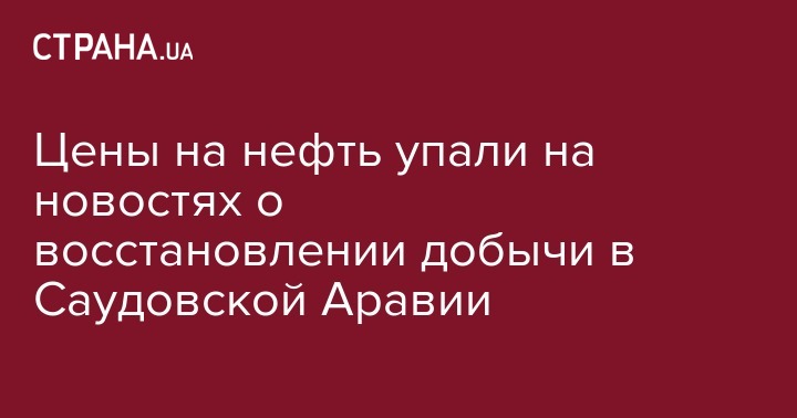 Цены на нефть упали на новостях о восстановлении добычи в Саудовской Аравии