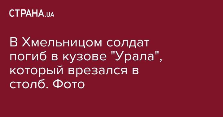 В Хмельницком на территории военной части старший солдат-контрактник, не справившись с управлением военным автомобилем "Урал 4320", врезался в бетонную электроопору, в результате чего погиб военнослужащий, находившийся в кузове автомобиля.