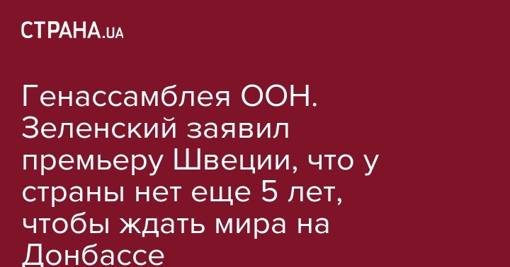 Генассамблея ООН. Зеленский заявил премьеру Швеции, что у страны нет еще 5 лет, чтобы ждать мира на Донбассе
