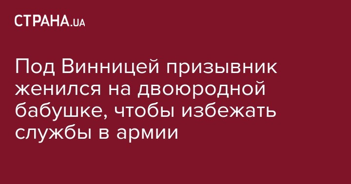 Под Винницей 24-летний парень женился на старушке с первой группой инвалидности и стал ее опекуном. Разница в возрасте между молодоженами составляет 57 лет, но бонусом является автоматическая отстрочка от прохождения срочной службы в армии. Об этом идет речь в сюжете ТСН.