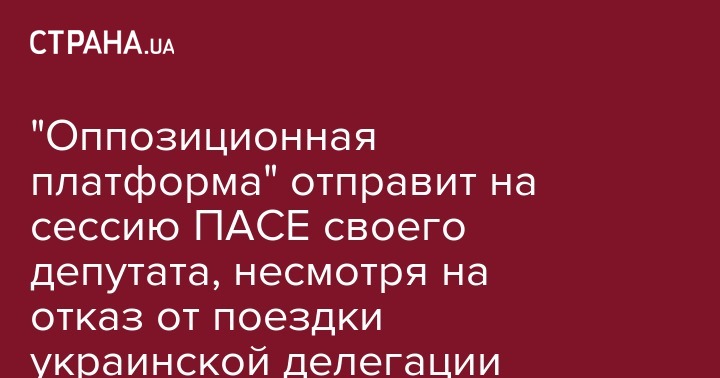 Несмотря на отказ Украины принимать участие в ближайшей сессии ПАСЕ, "Оппозиционная платформа– За жизнь" планирует отправить на нее своего депутата. Об этом сказано в заявлении, обнародованом на сайте политсилы.