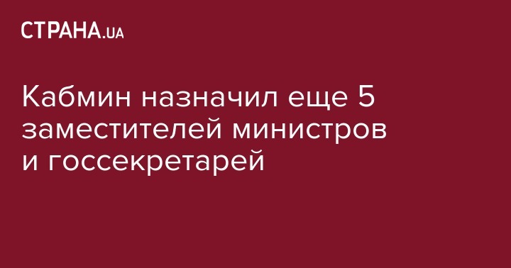 Кабинет министров Украины в среду назначил еще 5 заместителей министров и государственных секретарей. Об этом сообщает пресс-служба правительства.