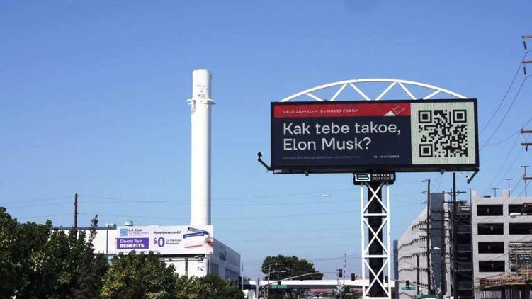 В Калифорнии у офиса SpaceX появился бигборд с надписью "Kak tebe takoe, Elon Musk?"