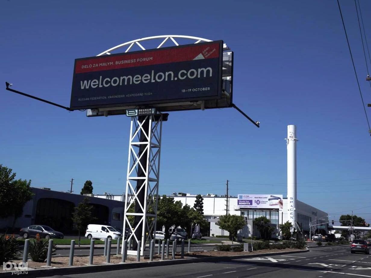 В Калифорнии, возле офиса компании SpaceX в городе Хоторн появился билборд с надписью "Kak tebe takoe, Elon Musk?". Таким образом основателя SpaceX и Tesla Илона Маска пригласили на бизнес-форум "Дело за малым" в Краснодаре.