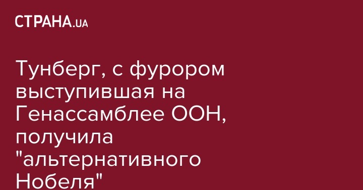 Тунберг, с фурором выступившая на Генассамблее ООН, получила "альтернативного Нобеля"