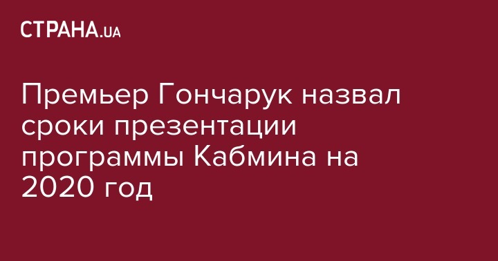 Кабинет Министров собирается презентовать программу своей деятельности на 2020 год в период 30 сентября - 6 октября. Об этом в время брифинга сообщил премьер-министр Алексей Гончарук, передают "Украинские новости".