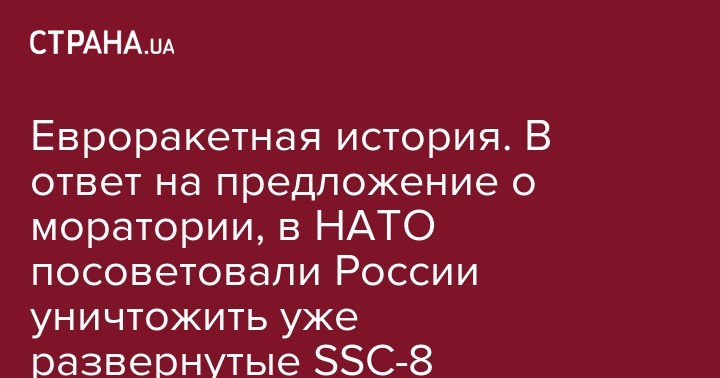 Евроракетная история. В ответ на предложение о моратории, в НАТО посоветовали России уничтожить уже развернутые SSC-8