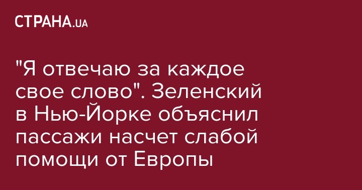 "Я вам скажу честно, смотрите, я за каждое свое слово отвечаю. Я много раз благодарил и благодарю, и продолжаю... сейчас на встрече с президентом Трампом я сказал, что благодарен за любую помощь для Украины - от наших европейский лидеров, от госпожи Меркель, от господина Макрона, и от многих других.