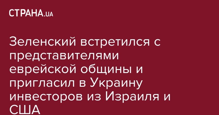 Зеленский заявил, что Украина должна, по его мнению, стать "мировым брендом всего инновационного". Для этого президент планирует привлечь опыт США и Израиля. Владимир Зеленский призвал представителей еврейских организаций способствовать привлечению в Украину американских и израильских инвесторов.
