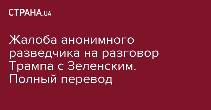 "Страна" публикует полный перевод жалобы неназванного сотрудника американских спецслужб, рассекреченной Комитетом по вопросам разведки Палаты представителей США. Жалоба касается нарушений во время телефонного разговора президента США Дональда Трампа с президентом Украины Владимиром Зеленским.