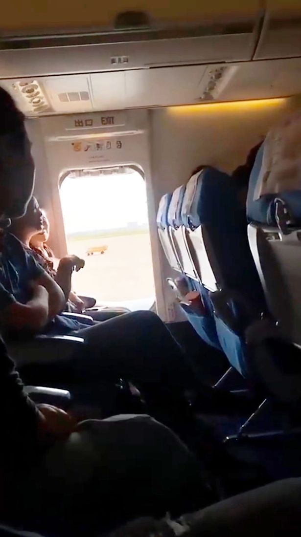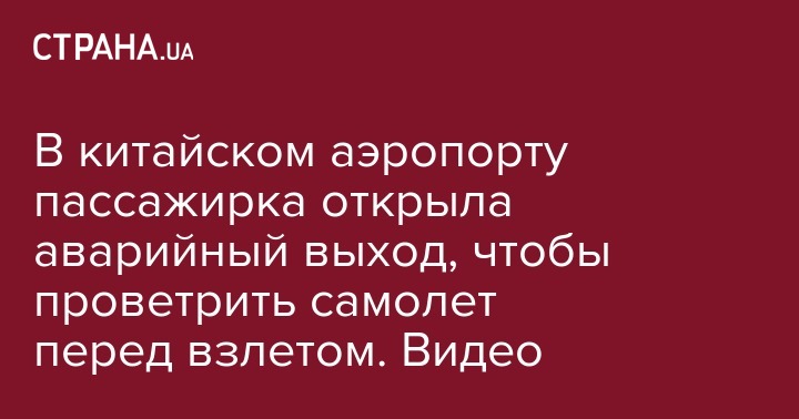 В китайском аэропорту пассажирка открыла аварийный выход, чтобы проветрить самолет перед взлетом. Видео