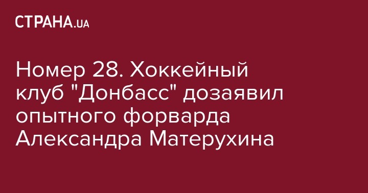 Номер 28. Хоккейный клуб "Донбасс" дозаявил опытного форварда Александра Матерухина