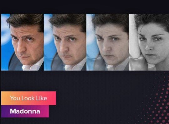 Вторая попытка также не нашла для Зеленского звездного двойника среди мужчин. Результат - сходство с американской поп-дивой Мадонной.