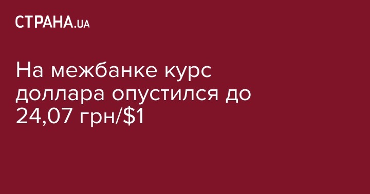 На межбанке курс доллара опустился до 24,07 грн/$1
