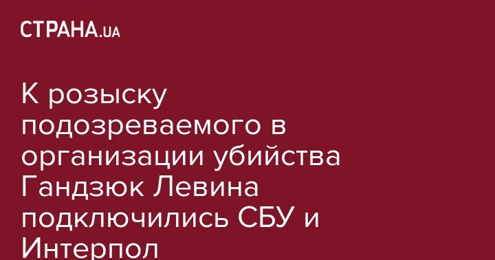 СБУ и Интерпол совместно занимаются международным розыском Алексея Левина, которого подозревают в организации убийства активистки Екатерины Гандзюк. Об этом сообщает пресс-центр СБУ.