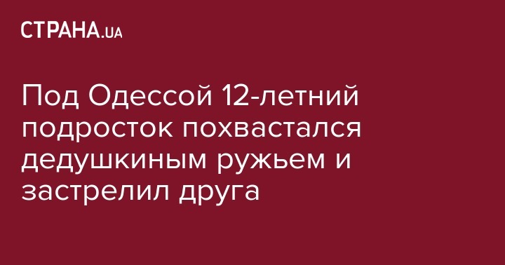В Одесской области 12-летний подросток застрелил из дедушкиного ружья своего 15-летнего друга. Трагедия произошла в селе Беляевского района, сообщается на сайте регионального ГУНП.