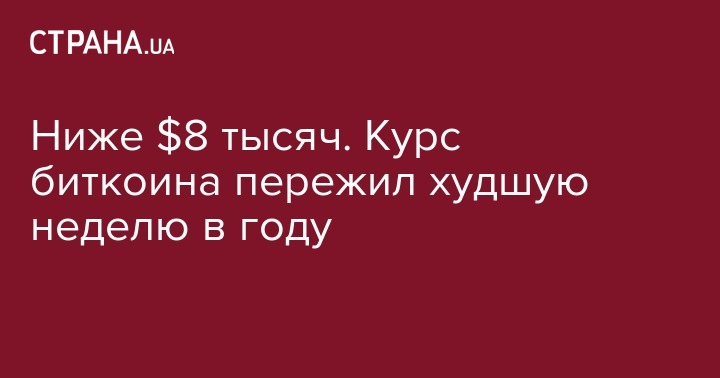 Ниже $8 тысяч. Курс биткоина пережил худшую неделю в году