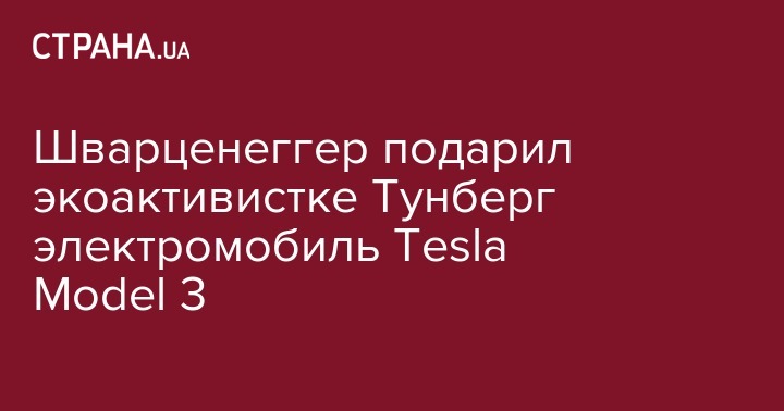 Голливудский актер и политик Арнольд Шварценеггер подарил электромобиль 16-летней экоактивистке Грете Тунберг, сообщает сайт Tesla.